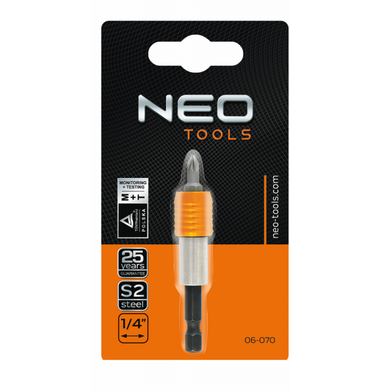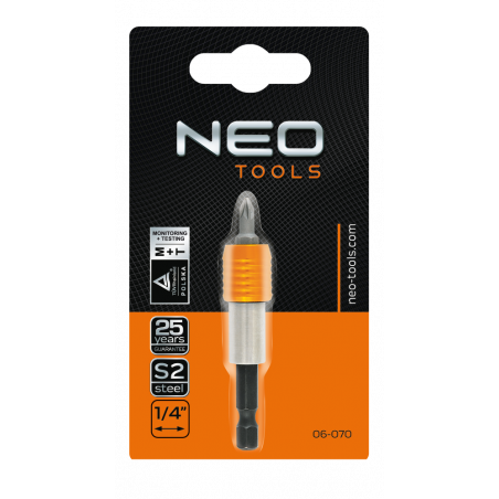 Uchwyt do końcówek, 1/4", 65 mm, magnetyczny, stal CrV, z końcówką wkrętakową PH2 x 25 mm, TÜV