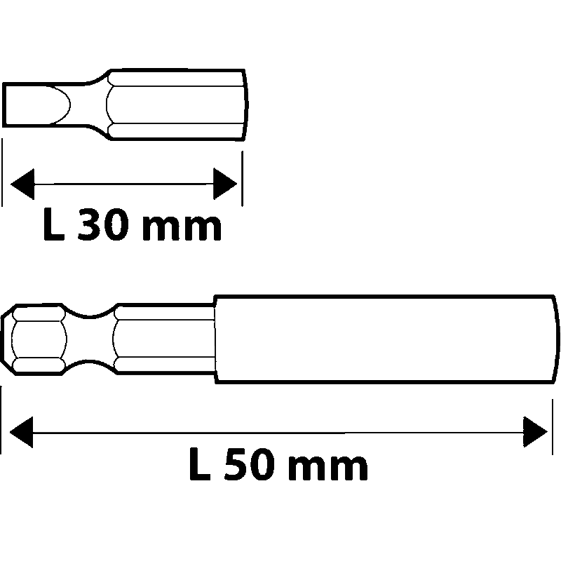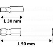 Końcówki wkrętakowe z uchwytem, zestaw 7 szt., 1/4", uchwyt 50 mm, 6 szt. końcówek wkrętakowych, rozmiary: PH0, 2 x PH1, 2 x PH2, PH3, stal CrV