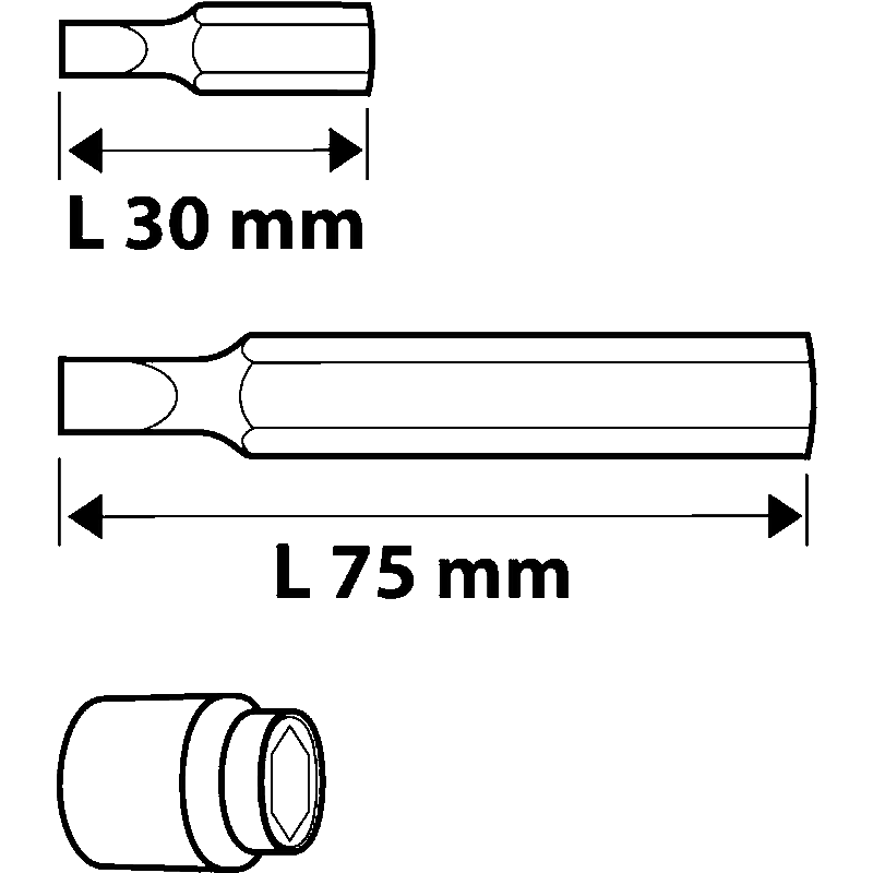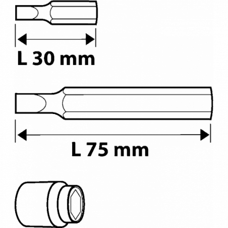 Końcówki wkrętakowe Torx, zestaw 15 szt., 7 szt. końcówek wkrętakowych 30 mm, rozmiary: T20, T25, T30, T40, T45, T50, T55, 7 szt. końcówek wkrętakowych 75 mm, rozmiary: T20, T25, T30, T40, T45, T50, T55, redukcja, etui z tworzywa