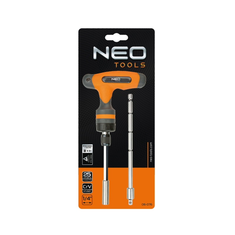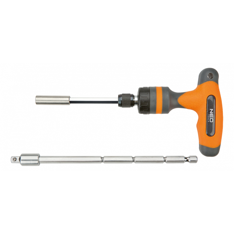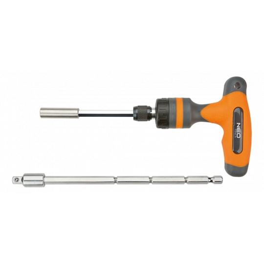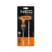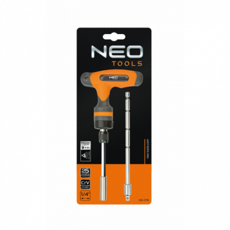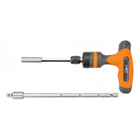Uchwyt typu T z grzechotką 1/4", teleskopowy, stal CrV, uchwyt dwumateriałowy, dwa groty - jeden teleskopowy, TÜV
