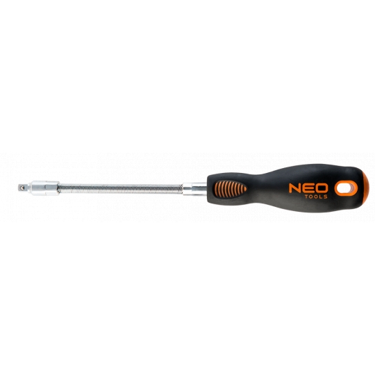 Uchwyt elastyczny do końcówek wkrętakowych (nr ref. 06-079, trójgraniasty kształt uchwytu, wyprofilowane oparcie dla kciuka, uchwyt pokryty tworzywem TPR odpornym na działanie chemikaliów, olejów mineralnych, smarów