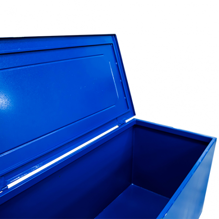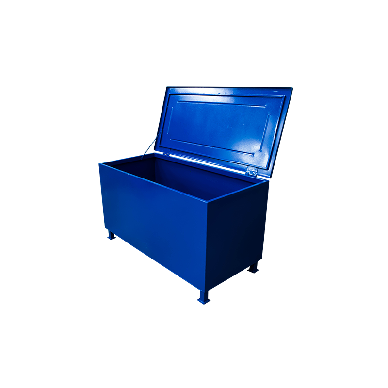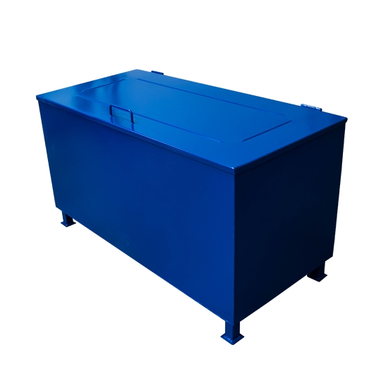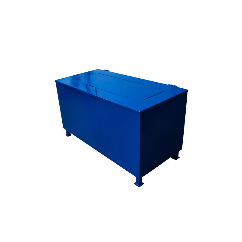 Metalowa skrzynia do przechowywania i transportu zużytych świetlówek. Możliwość zamknięcia pojemnika na kłódkę. Możliwość transportowania wózkiem paletowym.
