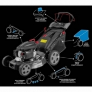 Kosiarka spalinowa z napędem samojezdnym 2,2 KW (3KM), pojemność silnika 139 cm3, obroty 2850min⁻¹, szer.koszenia 460 mm, centralna 5-stopniowa regulacja wysokości (25-65 mm), masa 31 kg, pojemność kosza 55L, pojemność zbiornika paliwa 1,3L, Easy Start (pompka wstępna paliwa), wyrzut boczny, mulczowanie.
