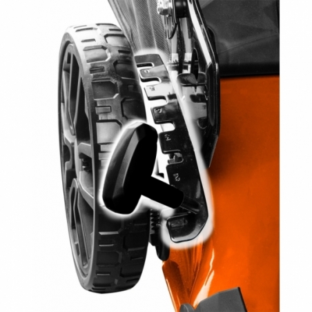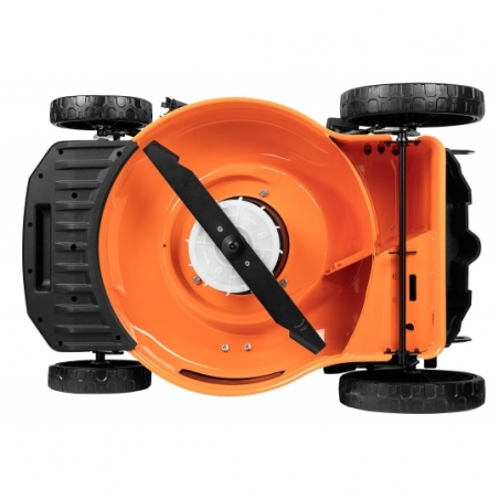 Kosiarka akumulatorowa bezszczotkowa 36V szerokość cięcia 450mm, 6-stopniowa regulacja wysokości koszenia w zakresie: 25 - 75cm; pojemność kosza 50L; prędk. obrot. 2800 obr/min-1