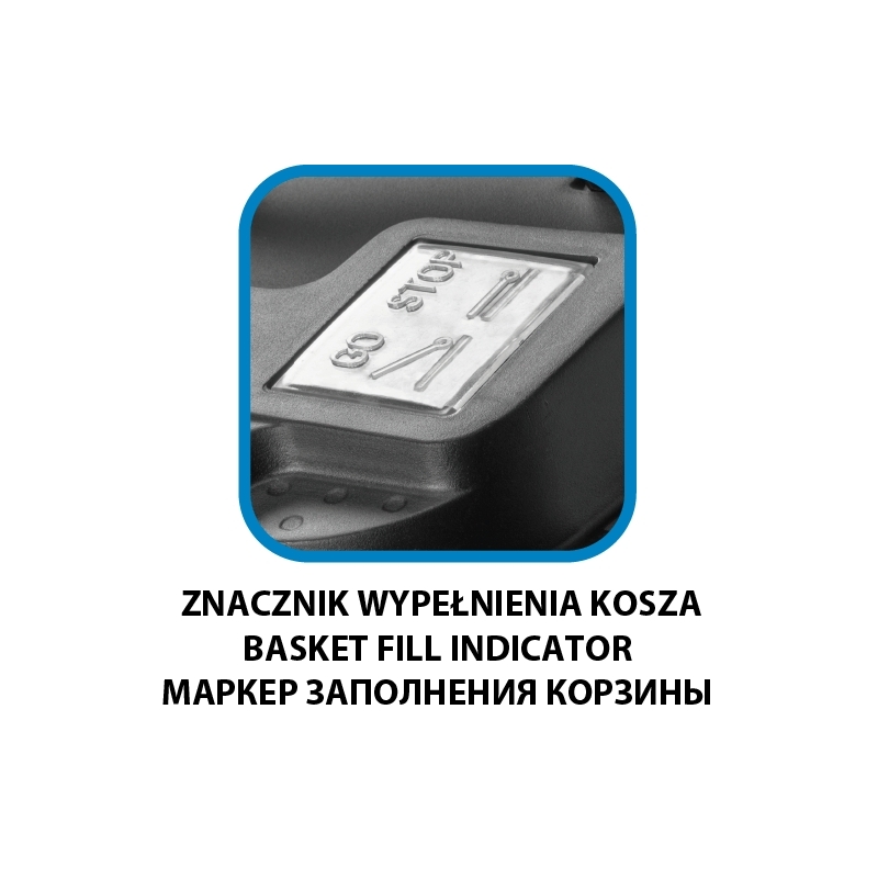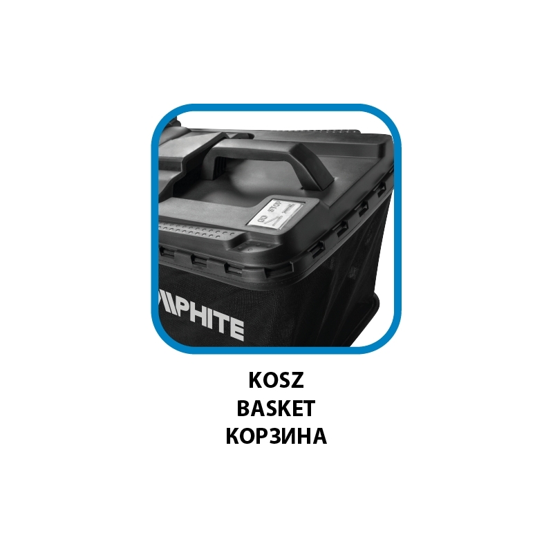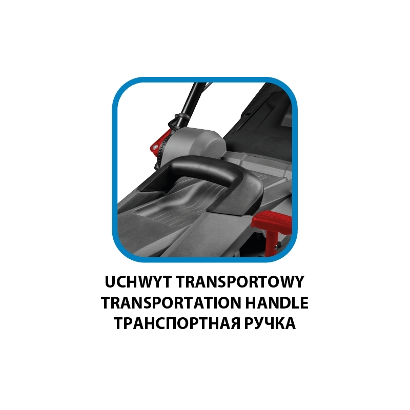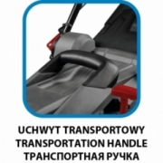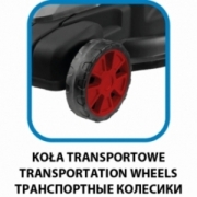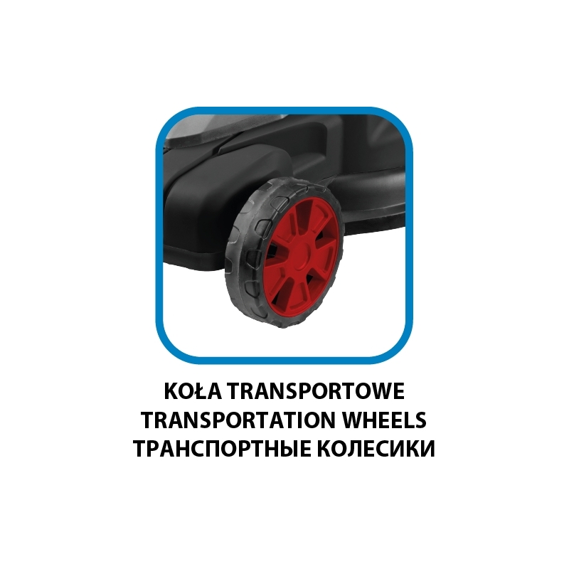 Kosiarka elektryczna 2000W, obroty 3500 min⁻¹, szer. koszenia 430 mm, wys. koszenia 20,30,40,50,60,70 m, masa 14 kg