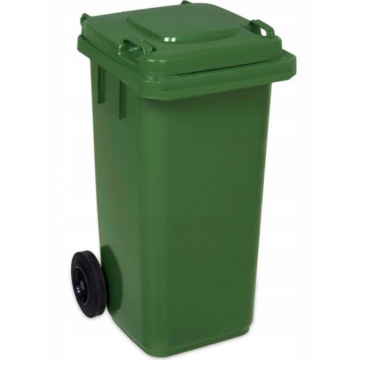 Pojemnik na odpady komunalne zmieszane i segregowane, materiały stałe, sypkie wykonany z polietylenu niskociśnieniowego wysokiej gęstości PEHD wg normy EN-840.