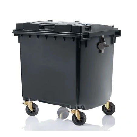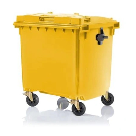 Pojemnik na odpady komunalne zmieszane i segregowane, materiały stałe, sypkie wykonany z polietylenu niskociśnieniowego wysokiej gęstości PEHD wg normy EN-840.