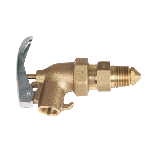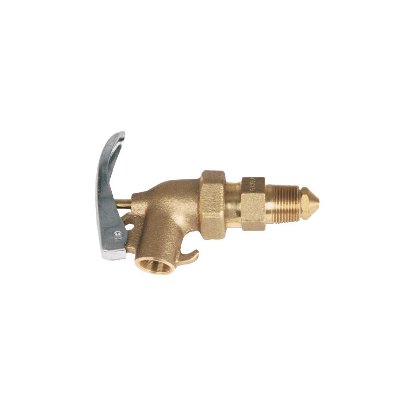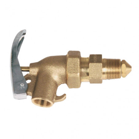 Kran z mosiądzu do cieczy niepowodujących korozji, samozamykający się, gwint 3/4", uszczelnienie teflonem i zintegrowana ochrona przed płomieniami.