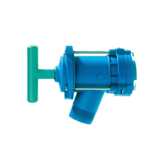 Kran do beczki z gwintem 2" z PE do wolno płynących i reagujących cieczy. Wybierz pompę do napełniania.