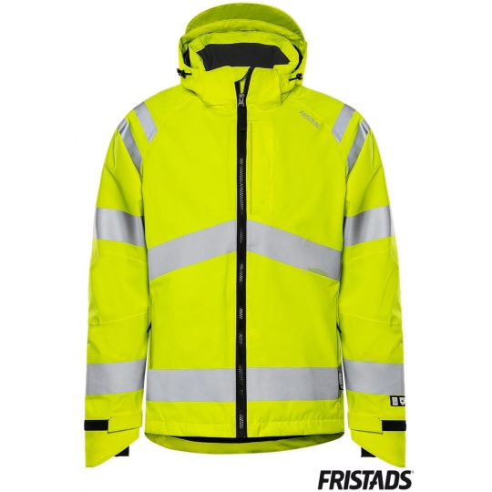 RAW-POL FRSTDS-4680 to męska kurtka ochronna FRISTADS z materiału z recyklingu, zaprojektowana dla prac wymagających wysokiej widoczności i komfortu ruchu. Wyposażona w odpinany kaptur ze wzmocnionym daszkiem, przedłużany tył, elastyczne mankiety z uchwytem na kciuk oraz pasy odblaskowe — idealna do pracy na zewnątrz w trudnych warunkach.