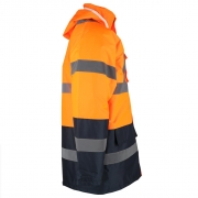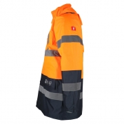 RAW-POL BLUE-ORANGE-J to męska, ocieplana kurtka ochronna REIS w wersji hi‑vis, zaprojektowana dla drogowców i służb porządkowych. Wykonana z powlekanej tkaniny Oxford 300D, z odpinanym kapturem chowanym w kołnierzu, ukrytą kieszenią na telefon i pasami odblaskowymi — fason RELAXED zapewnia wygodę i widoczność podczas pracy na zewnątrz.