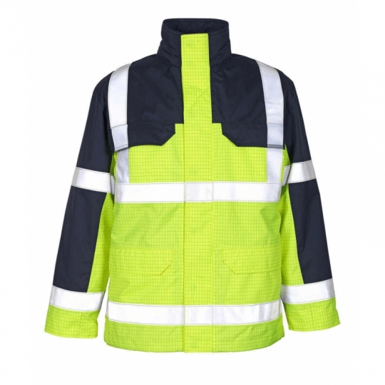Antystatyczna, chroniąca przed kwasem i ognioodporna tkanina.; Oddychający, wiatro- i wodoodszczelny produkt z klejonymi szwami.; Pikowana podszewka odpinana na zamek błyskawiczny.; Zapięcie na dwukierunkowy zamek błyskawiczny z podwójną klapką sztormową i zakryte zatrzaski.; Możliwość dopięcia kaptura MASCOT® MacGill za pomocą zatrzasków.
