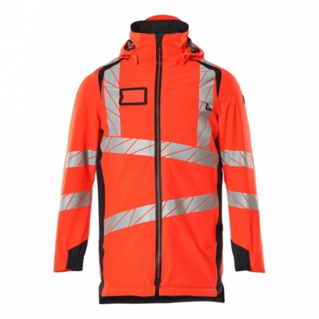 Oddychający, wiatro- i wodoodszczelny produkt z klejonymi szwami.; Wyjątkowy CLIMASCOT® system izolacji zapewnia ciepło, jest lekki, miękki, a po złożeniu prawie nie zajmuje miejsca.; Zapięcie na wodoszczelny zamek błyskawiczny i wewnętrzna klapka sztormowa.; Kieszeń na piersi zapinana na wodoszczelny zamek błyskawiczny.; Przednie kieszenie zapinane na wodoszczelne zamki błyskawiczne.; Materiał w dolnej części pleców można wydłużyć odpinając guziki i dzięki temu uzyskać dodatkową ochronę przeciw wiatrowi i złej pogodzie.