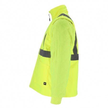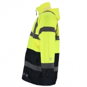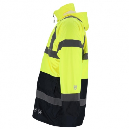 RAW-POL LH-PROSPECT to męska kurtka ochronna 4w1 marki LHOLLMAN: zewnętrzna kurtka z powłoką PU oraz odpinana wewnętrzna kurtka z pikowaniem. Zaprojektowana dla służb drogowych i prac w trudnych warunkach — łączy wodoodporność, izolację termiczną, widoczność HI‑VIS i funkcjonalność (odpinane rękawy, kieszeń na telefon). Fason: RELAXED.