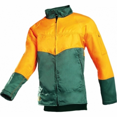 Kurtka FORESTRY z ochroną przed piłą łańcuchową. - pełna ochrona przez piłą łańcuchową ramion i barków - pomarańczowa wstawka o wysokiej widoczności - wentylacja w tylnej partii - możliwość zwężenia rękawów za pomocą nap - przedłużany tył - trzy kieszenie na suwak: dwie z boku oraz jedna na telefon na lewym ramieniu - jedna kieszeń od wewnątrz zapinana na suwak - spełnia wymagania norm EN340 i EN381-11 (KLASA 1)