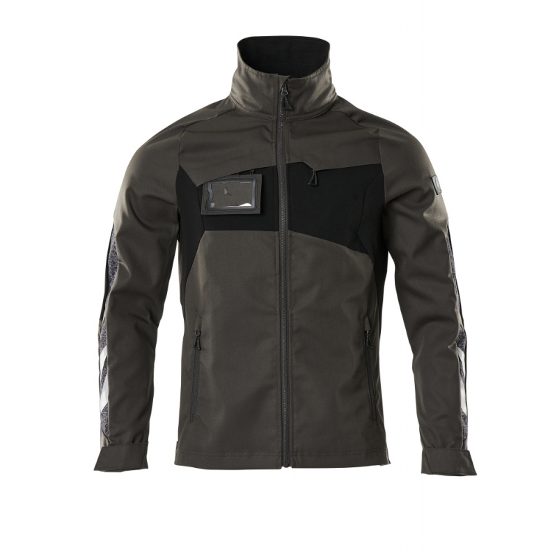 Części produktu wykonane ze streczu. Połączenie lekkiej tkaniny jakości 442 oraz ULTIMATE STRETCH jakości 511. Zapięcie na zamek błyskawiczny i wewnętrzna klapka sztormowa. Kieszeń na piersi zapinana na zamek błyskawiczny. Odczepiany uchwyt na identyfikator.