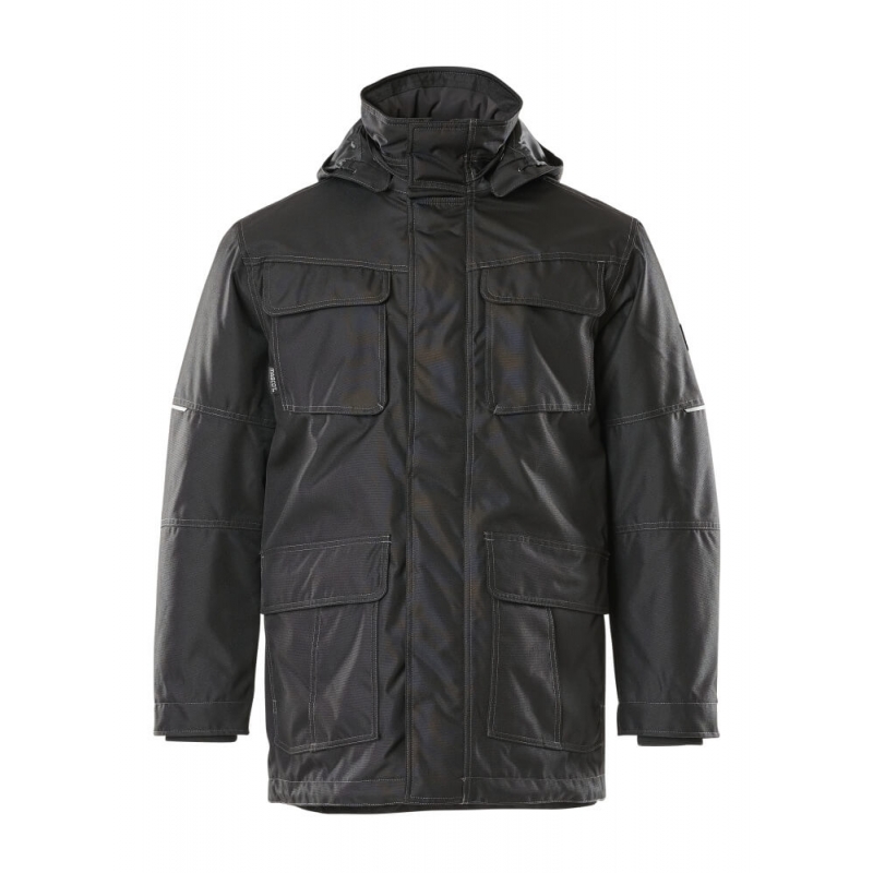 Oddychający, wiatro- i wodoodszczelny produkt z klejonymi szwami.; Odpinany kaptur z podszewką i regulowaną gumką.; Odpinana futrzana podszewka.; Duża swoboda w poruszaniu zapewniona poprzez ergonomiczny krój rękawów.; Dodatkowa widoczność dla otoczenia dzięki zastosowaniu pasków refleksyjnych.