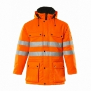 Bearnylon® to wodoodporny i niezwykle wytrzymały materiał.; Odpinany kaptur z podszewką i regulowaną gumką.; Regulowana talja.; Uchwyt typu d-ring do przypięcia kluczy lub identyfikatora.; Kieszenie na rękawach na zamek błyskawiczny.