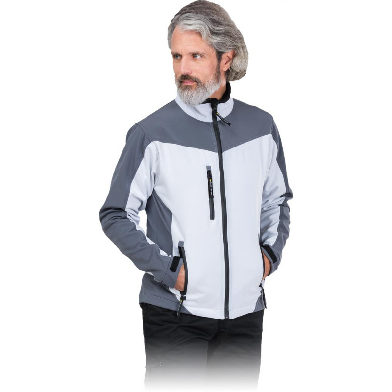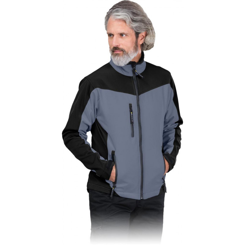Kurtka ochronna z materiału SOFTSHELL. - 94% poliester, 6% spandex - gramatura 310 g/m2 - tkanina oddychająca (WP3000MM) oraz wodoodporna (MP8000MM) - zapinana na suwak - dwie boczne kieszenie na suwak - dodatkowa kieszeń na suwak w górnej części kurtki - rękawy zakończone zapięciem na rzep - na dole kurtki ściągacz co umożliwia dopasowanie do sylwetki użytkownika