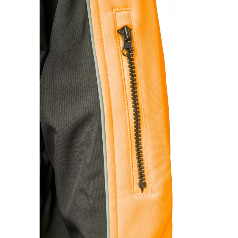 .Kieszenie: na lewym rękawie, kieszeń zapinana na zamek, dwie kieszenie boczne zapinane na zamek, dwie kieszenie wewnętrze, kieszeń na klatce piersiowej zapinana na zamek, kryta listwą,