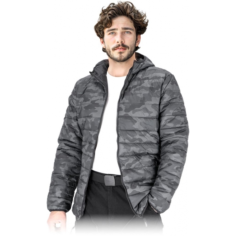 Pikowana kurtka ochronna ocieplana, męska. - tkanina: 100% poliester o gramaturze 65 g/m2 - wyściółka 100% poliester o gramaturze 180 g/m2 - podszewka 100% poliester 210T o gramaturze 55 g/m2 - zapinana na zamek błyskawiczny - kaptur - dwie kieszenie w dolnej części zapinane na suwak - rękawy, kaptur oraz dół kurtki wykończone elastyczną lamówką