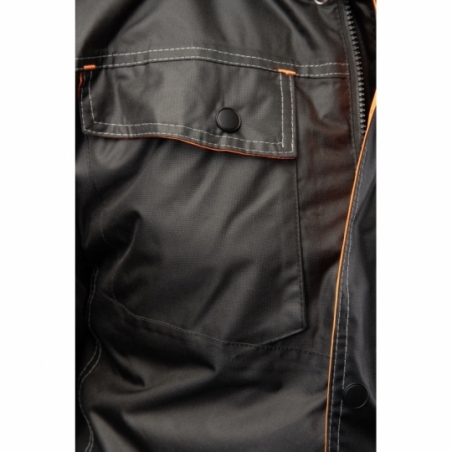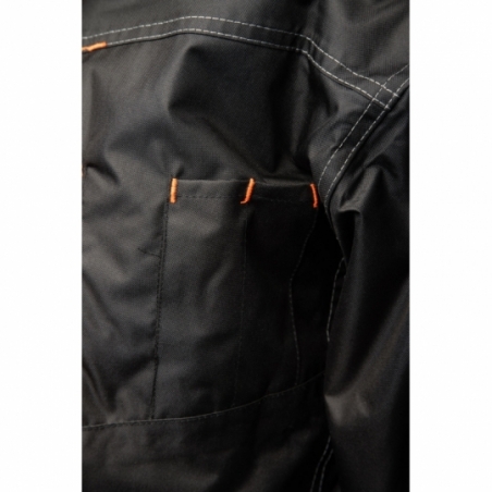 - Kieszenie: kieszeń na klatce piersiowej zapinana na zamek; kieszenie boczne zapinane na zamek, kryte listwą; kieszeń na klatce piersiowej kryta patką zapinaną na napę
