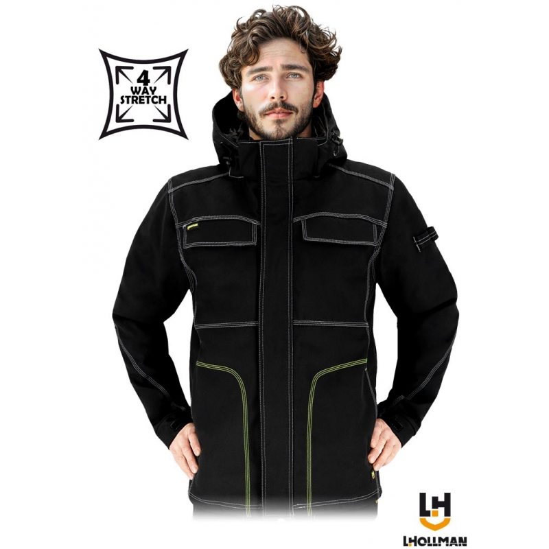 RAW-POL LH-ORKAN-J to męska, ocieplana kurtka ochronna marki LHOLLMAN wykonana z trójwarstwowego softshellu z 4-kierunkowym streczem. Łączy elastyczność i ochronę przed wiatrem z komfortem termicznym; wyposażona w odpinany kaptur, liczne kieszenie i pętelki na akcesoria. Fason: REGULAR.