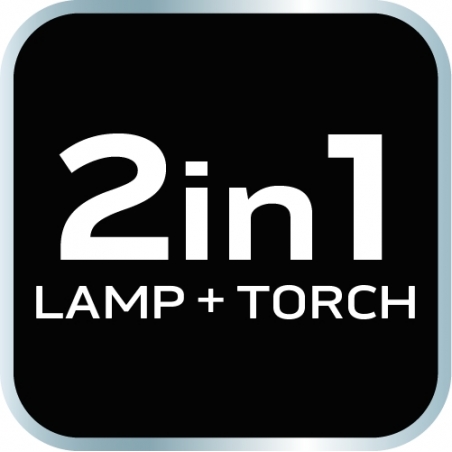Lampa warsztatowa bateryjna 2 w 1 Neo lampa, latarka, 200 lumenów, LED COB, zasilanie baterie 3xAA (w zestawie), magnes w podstawie, ruchoma podstawa, hak 360 stopni, czas pracy max 6.5h, 2 funkcje świecenia lampa, latarka, materiał korpusu ABS