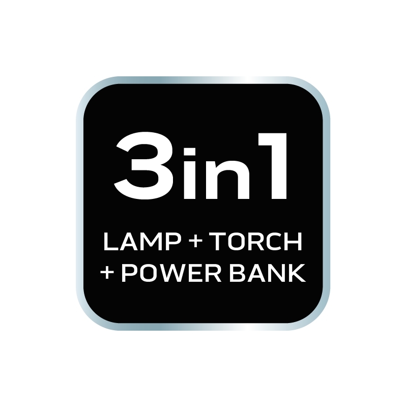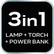 Lampa biwakowa akumulatorowa 3 w 1 Neo lampa, latarka, powerbank, moc 10W, 800 lumenów, LED CREE T6 + SMD, 2 akumulatory 1200mAh 3.8 Li-ion w zestawie, zasilanie USB, kabel USB w zestawie, 4 funkcje świecenia latarka, boczna lampa, boczna lampa światło czerwone, boczna lampa strobe czerwony, uchwy do przenoszenia, hak do powieszenia, czas pracy max 7h, czas ładowania 6h