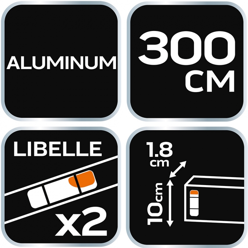 Łata murarska 300 cm, 2 libelle, (LxWxH) 3000 x 100 x 17 mm