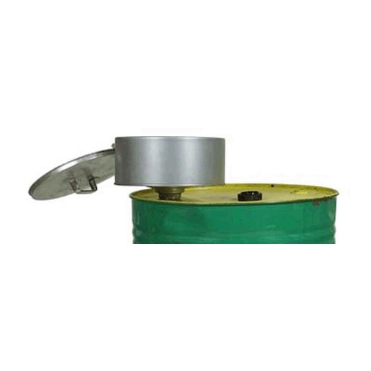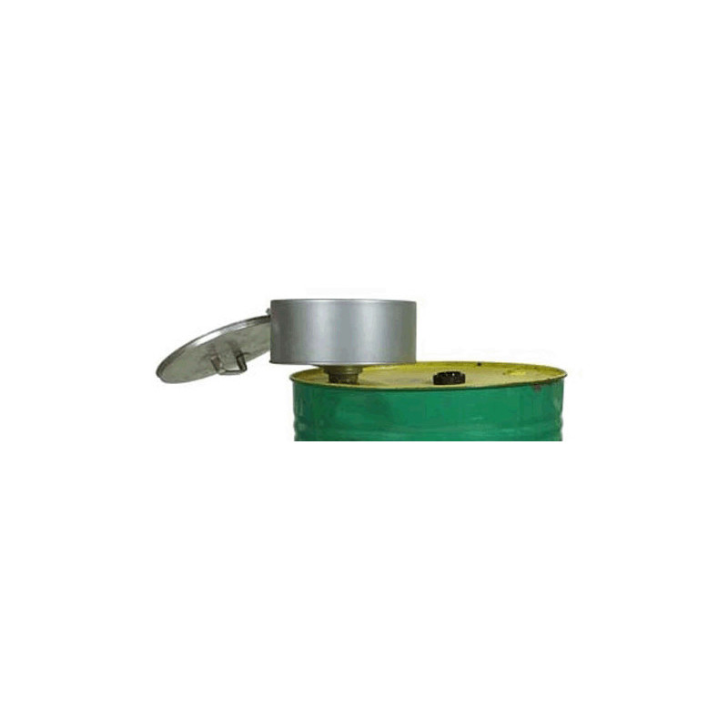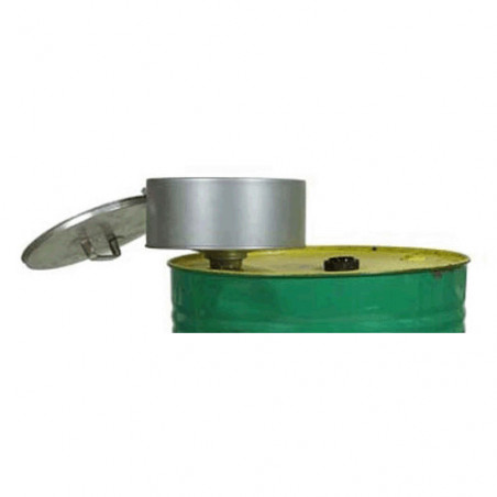 Lejek ocynkowany do beczek. Lejek do odpadów zaolejonych, wyposażony w pokrywę co zabezpiecza po zakończeniu przelewania płynów ulatnianiu się nieprzyjemnych zapachów.