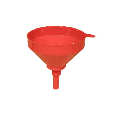 Lejek 200 mm z polipropylenu z kątowym wyprowadzeniem i wyjmowanym mosiężnym filtrem. Wymiar końcówki lejka: ø 19,4 mm.