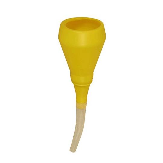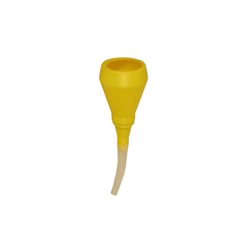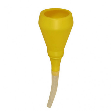 Lejek z polipropylenu z elastycznym przedłużeniem wymiennym. Uformowane uchwyty. Lejek odporny na oleje, środki przeciw zamarzaniu, benzynę, ropę naftową i różne chemikalia. ø 100 mm.