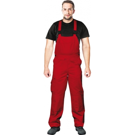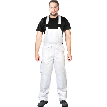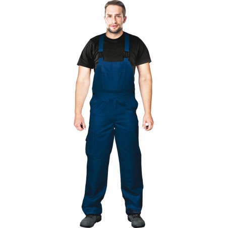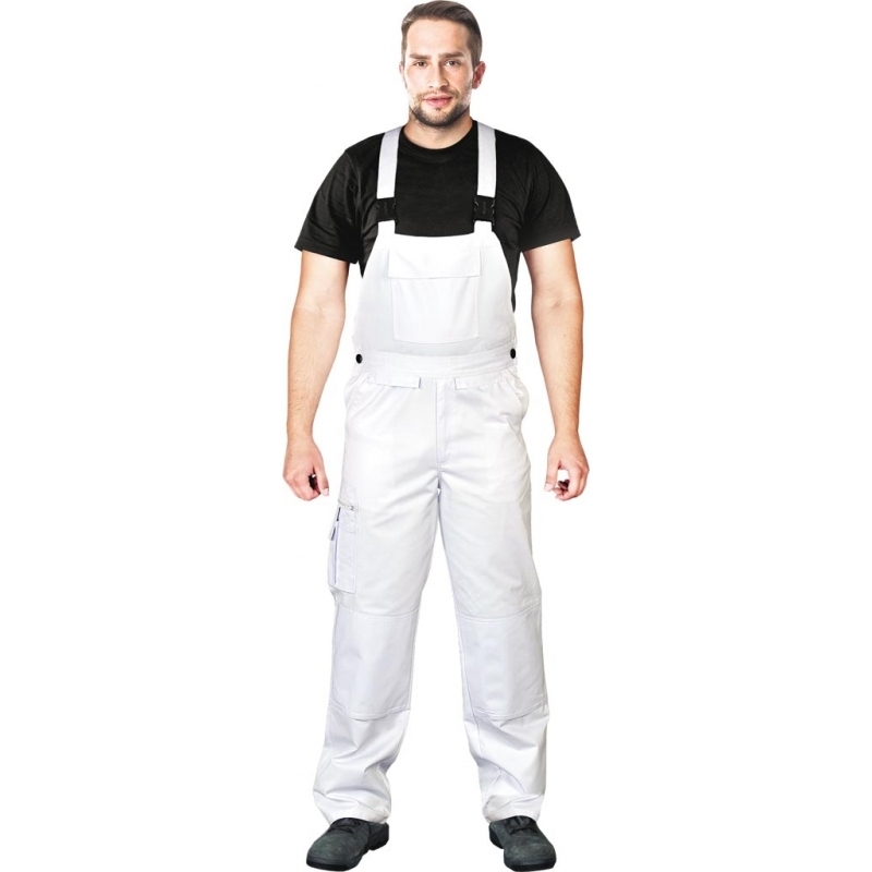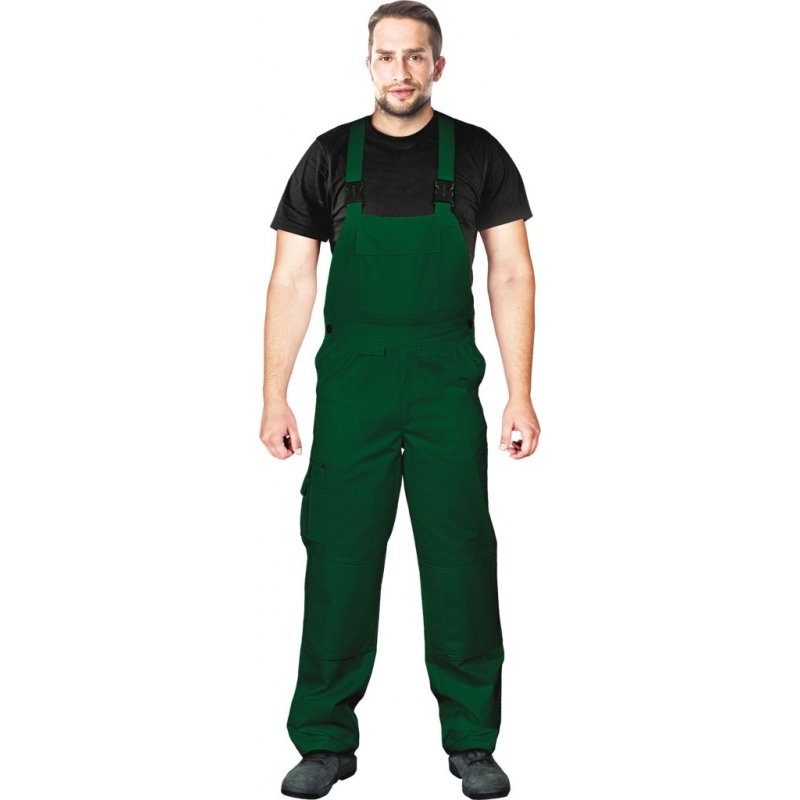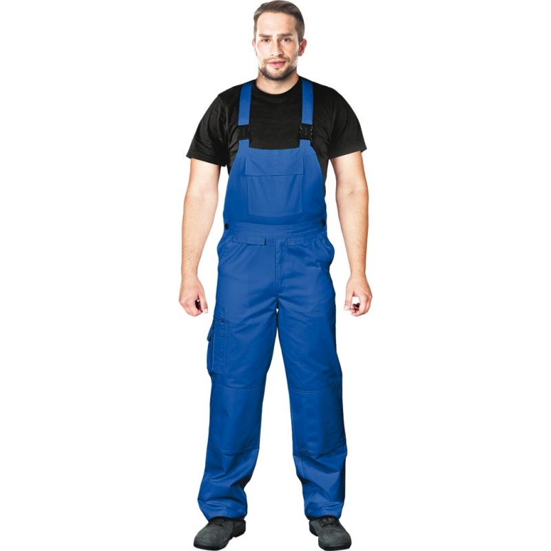 Spodnie ochronne ogrodniczki. - 65% poliester, 35% bawełna - gramatura 270 g/m2 - technologia High Technology Fabric zapewnia wytrzymałość i odporność na wytarcia - zwiększona odporność na smary, oleje i brud - na kolanach kieszenie na wkładki nakolannikowe KING BEE - cztery kieszenie: dwie z tyłu na napy oraz dwie boczne, dwie kieszenie na nogawkach w tym jedna na suwak i na telefon komórkowy - kieszeń na napę w górnej partii spodni - końcówka do przypięcia kluczy - regulacja w pasie, możliwość regulacji w długości szelkami, z dodatkową gumą w tylnej partii