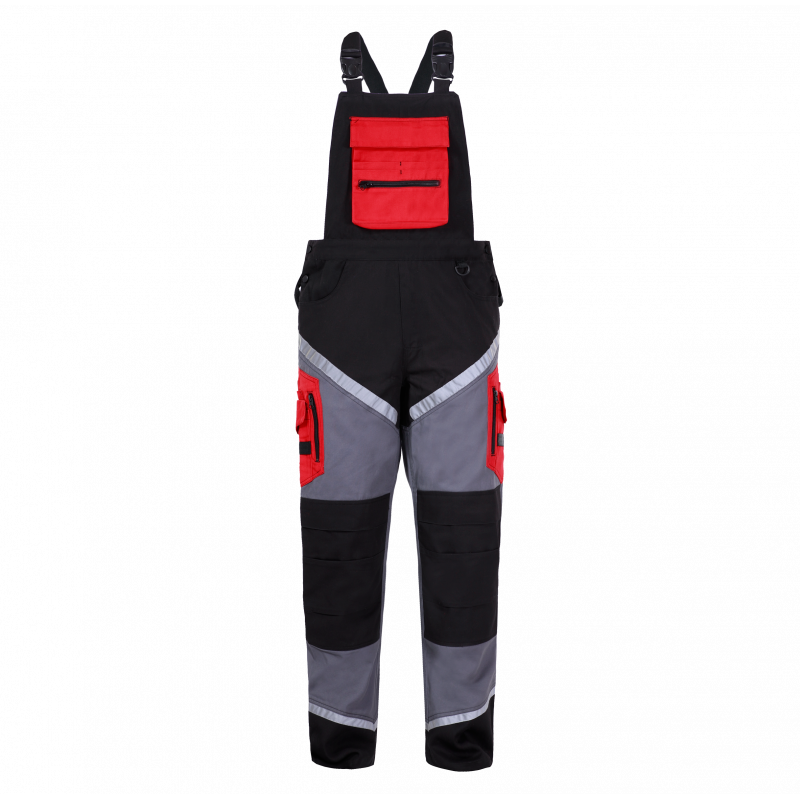 wzmocnione kieszenie oraz kieszenie na ochraniacze kolan materiałem [300D poliester] odpornym na przetarcie.