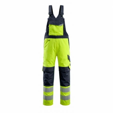 Antystatyczna, chroniąca przed kwasem i ognioodporna tkanina.; Odporność na zabrudzenia.; Podwójne i potrójne szwy w nogawkach i w kroku.; Ergonomiczny kształt nogawek opracowany zgodnie z ruchem ciała; Regulowane kieszenie na kolanach umożliwiają odpowiednie umieszczenie nakolanników.; Certyfikowane do użytku z wkładkami ochronnymi MASCOT typu LONG.