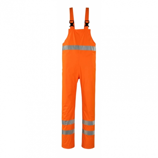 Właściwości wiatro- i wodoszczelne.; Wodoodporny materiał z klejonymi szwami, więc deszcz nie dostanie się do środka.; Regulowane szelki tkaninowe z krótkimi mocnymi gumkami.; Regulacja na guziki z boków używana podczas zmiany odzieży noszonej pod spodem.; Zatrzaski z boku ułatwiające nasuwanie na obuwie.
