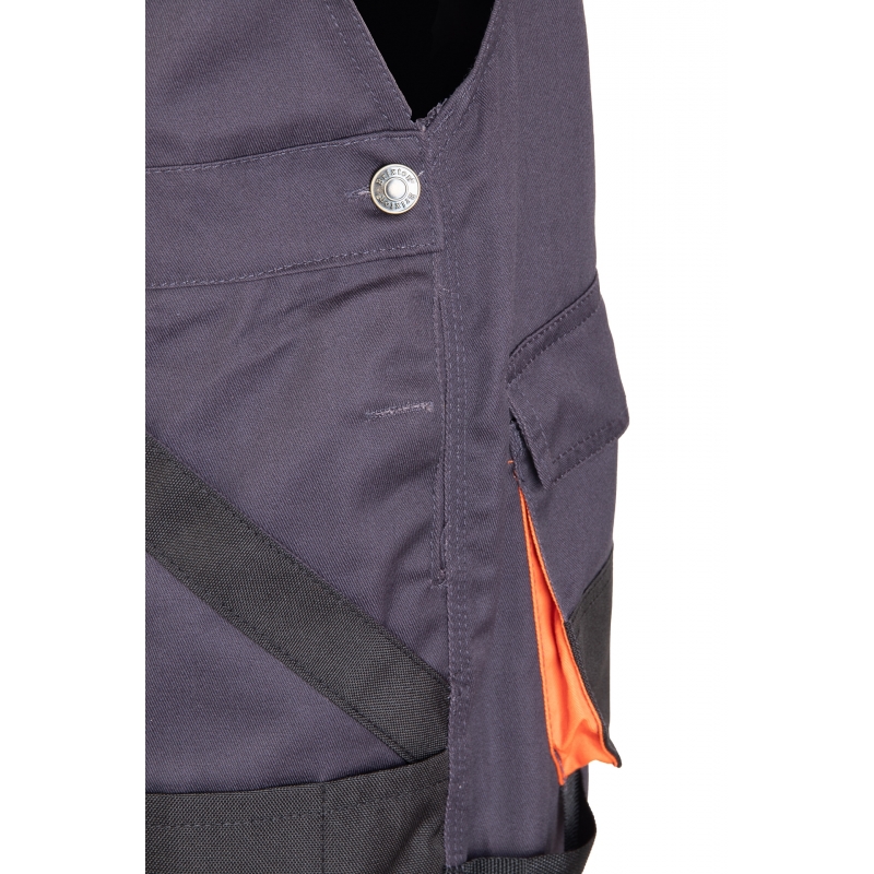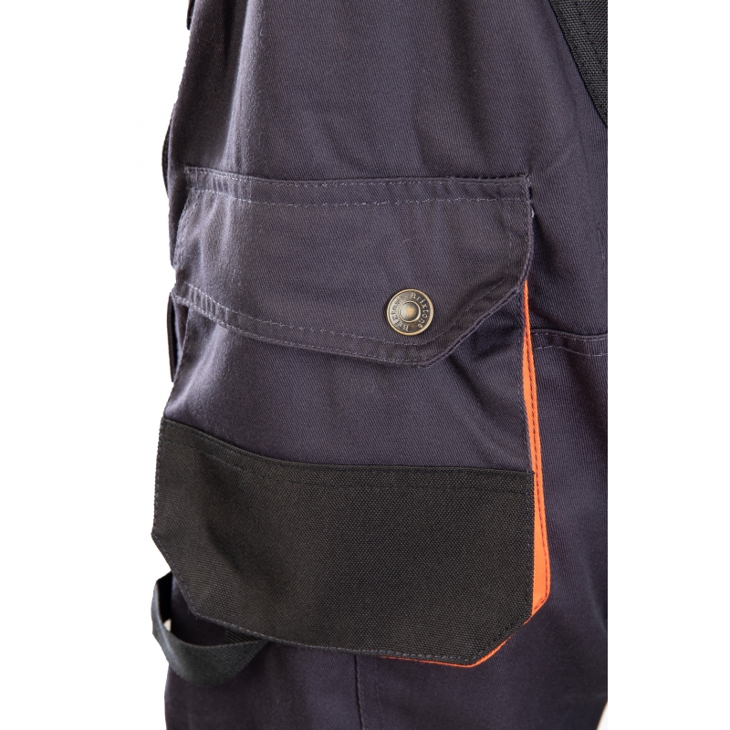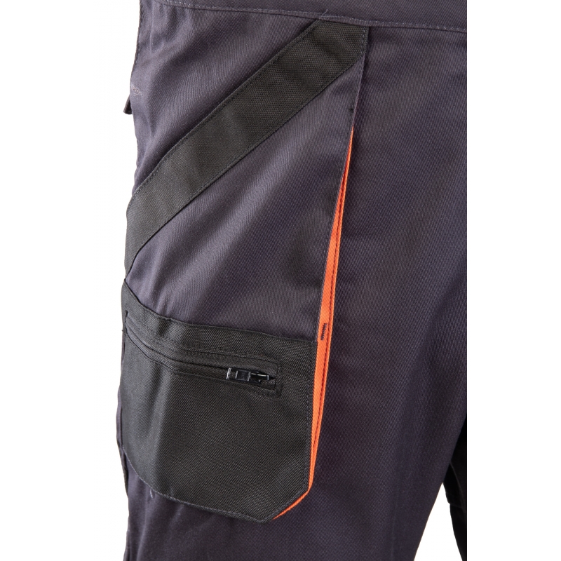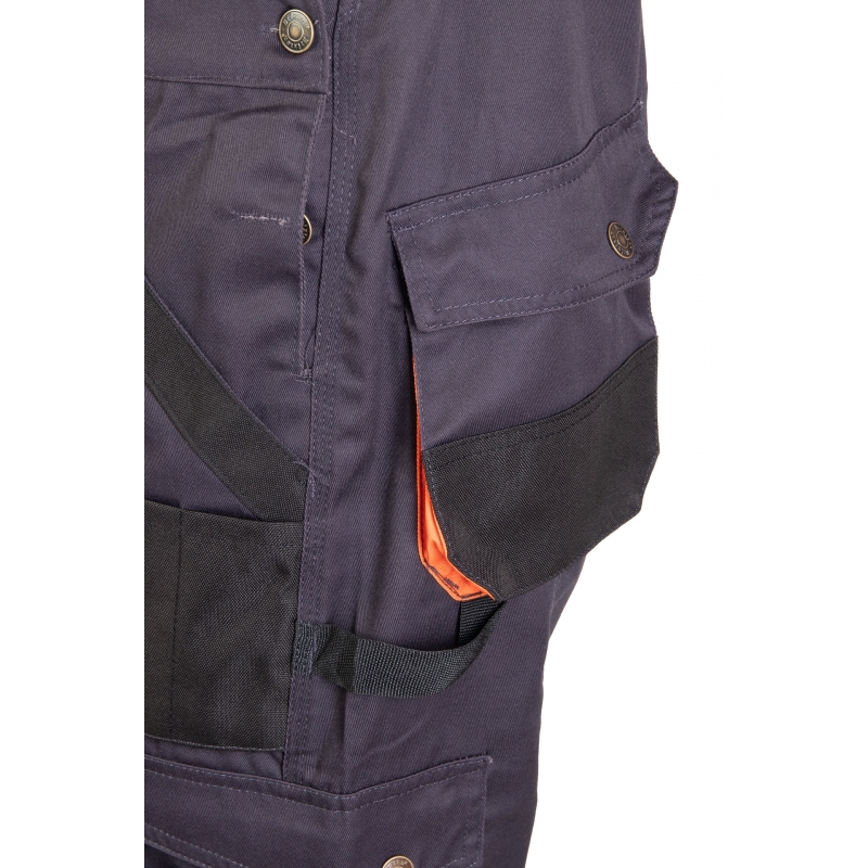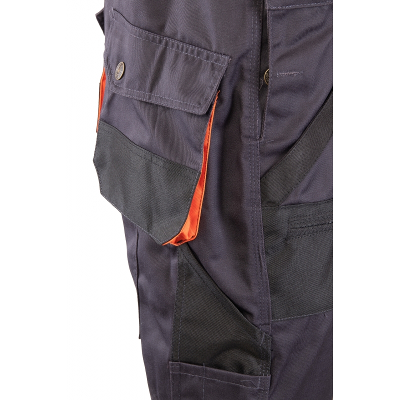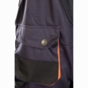 .Kieszenie: kieszeń na zamek dwie kieszenie w tylnej części spodni, przestrzenne kieszenie, dwie kieszenie boczne, wzmocnione kieszenie boczne, kieszeń na komórkę, kieszeń na długopisy, kieszeń na dokumenty, kieszeń na miarkę „metrówkę”, ergonomiczna kieszeń na nakolanniki wykonana z OXFORDU,