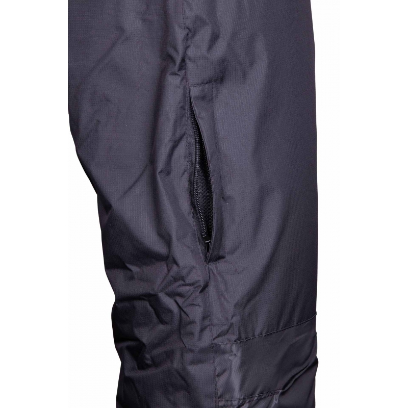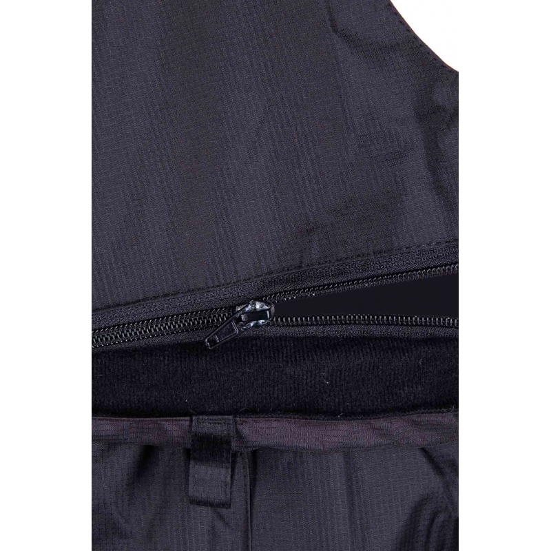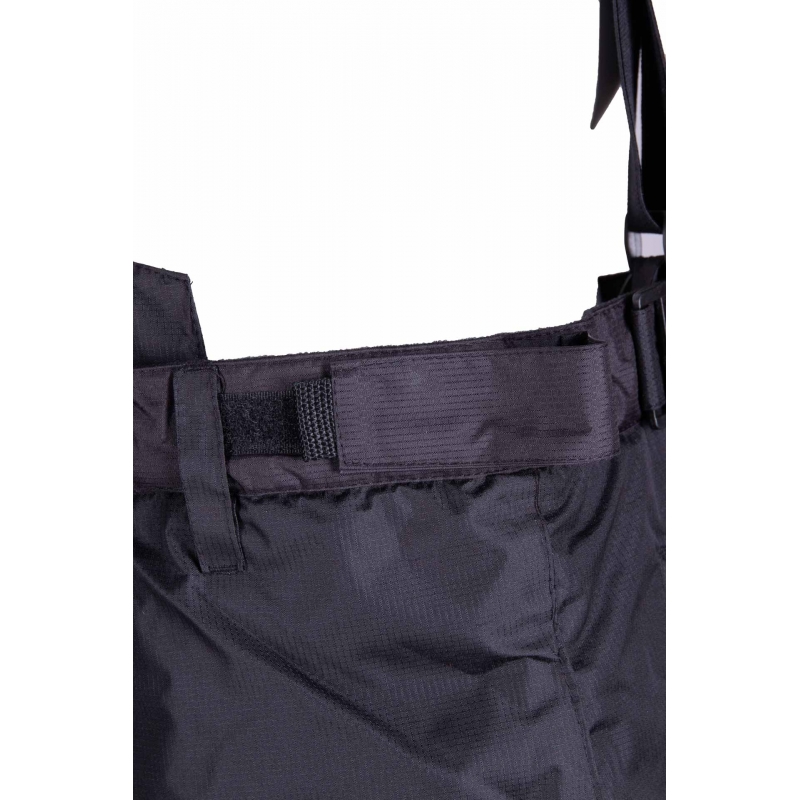 .Budowa/szycie: czarny, otwory wentylacyjne zapinane na zamek, rozporek zapinany na suwak, nogawki po wewnętrznej stronie na dole wzmocnione materiałem zapobiegającym przecieranie się nogawki, ściągacz u spodu nogawki,