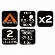Napinacz linek 2 sztuki, materiał korpusu nylon, do linek o przekroju od 2.0 mm od 5,0mm, w zestawie linka 3,7 mm x 1,5 m, materiał liny paracord