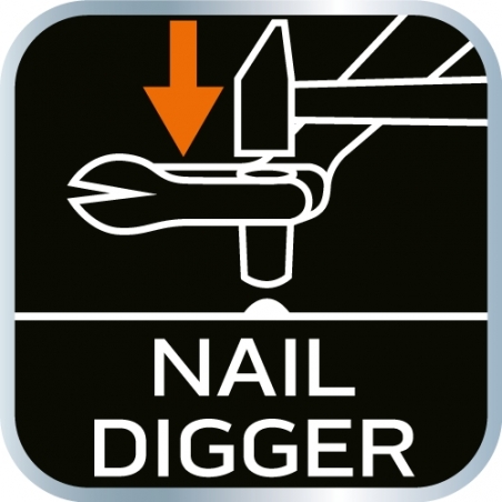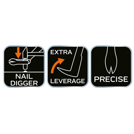 Wielofunkcyjny łom o długości 250mm i przekroju prostokątnym wykonany z wysokogatunkowej stali węglowej, dodatkowo hartowany z wzmocnionymi obszarami roboczymi, funkcja bocznego wyciągania gwoździ, niskoprowilowy pazur ułatwiający dostęp i ograniczający uszkodzenia materiału, wgłębnik umożliwia łatwe usuwanie gwoździ przy ograniczonym uszkodzeniu powierzchni. Łapka do wyciągania gwoździ wąska