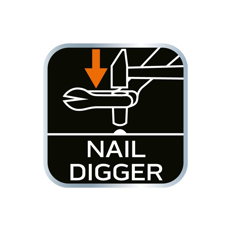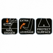 Wielofunkcyjny łom o długości 250mm i przekroju prostokątnym wykonany z wysokogatunkowej stali węglowej, dodatkowo hartowany z wzmocnionymi obszarami roboczymi, funkcja bocznego wyciągania gwoździ, niskoprowilowy pazur ułatwiający dostęp i ograniczający uszkodzenia materiału, wgłębnik umożliwia łatwe usuwanie gwoździ przy ograniczonym uszkodzeniu powierzchni. Łapka do wyciągania gwoździ szeroka.