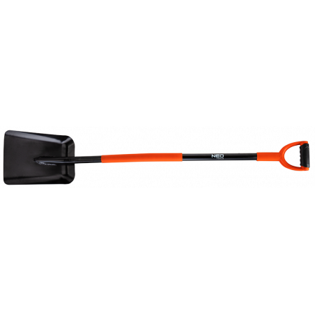 Łopata piaskowa, metalowy trzonek, plastikowy uchwyt, gumowany uchwyt na rurce, długość 1200 mm, szerokość głowicy 250 mm
