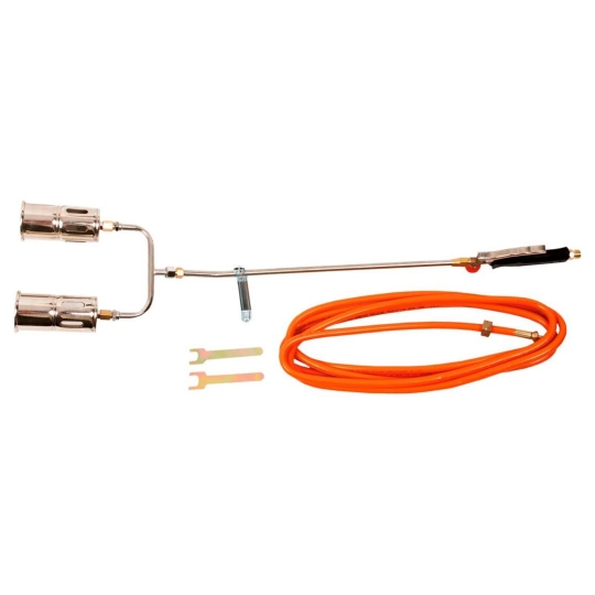 Zestaw dekarski 110kW, 2 palniki, wąż 5 m, długość lancy 50 cm, temperatura pracy 1850°C, średnie zużycie gazu 7800 g/h, masa 1.5 kg