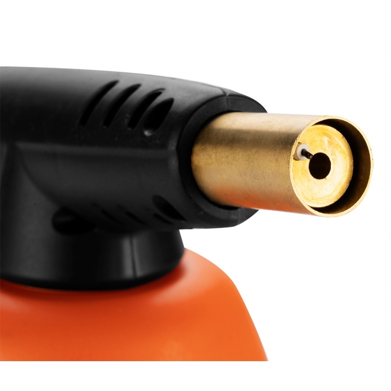 Lampa lutownicza gazowa na naboje 190 g, temperatura pracy 1350°C, moc 1.2 kW, średnie zużycie gazu 87 g/h, palnik wykonany z mosiądzu, zapłon piezo, obudowa z tworzywa.