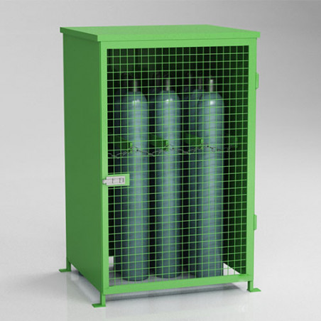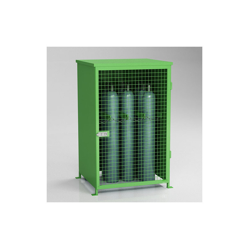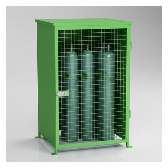 Magazyn do przechowywania butli z gazem na zewnątrz. Szafa posiada niezwykle solidną spawaną konstrukcję sufitu i ścian, dodatkowo pomalowana. Naturalną wentylację zapewniają drzwi kratowe. W środku znajduje się łańcuchowe mocowanie, które zabezpiecza butle przed nieplanowanym przemieszczaniem się. Szafa dodatkowo posiada specjalne mocowania do podłoża.