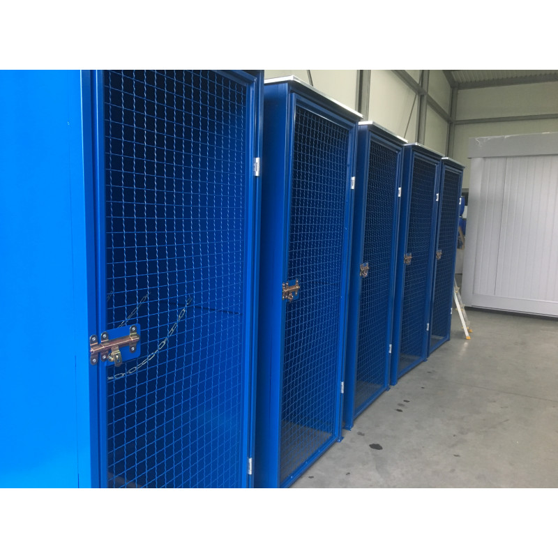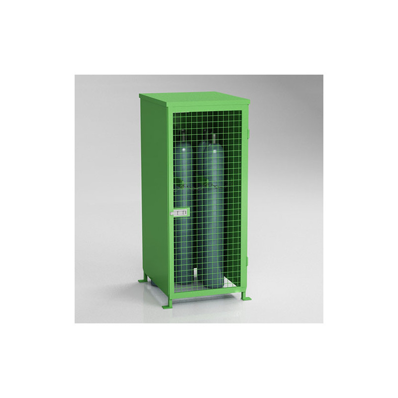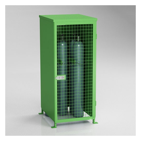 Box do przechowywania butli z gazem na zewnątrz. Niezwykle wytrzymała, spawana konstrukcja sufitu i ścian bocznych, pomalowana. Naturalną wentylację zapewniają drzwi kratowe. W środku specjalnie dostosowane uchwyty z łańcucha, by uchronić butle przed przemieszczaniem się. Szafa wyposażona w uchwyty, które gwarantują stabilne mocowanie do podłoża. Dodatkowo istnieje możliwość zamontowania podłoża, by uchronić butle przed zgubnym wpływem warunków atmosferycznych.