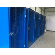 Box do przechowywania butli z gazem na zewnątrz. Niezwykle wytrzymała, spawana konstrukcja sufitu i ścian bocznych, pomalowana. Naturalną wentylację zapewniają drzwi kratowe.