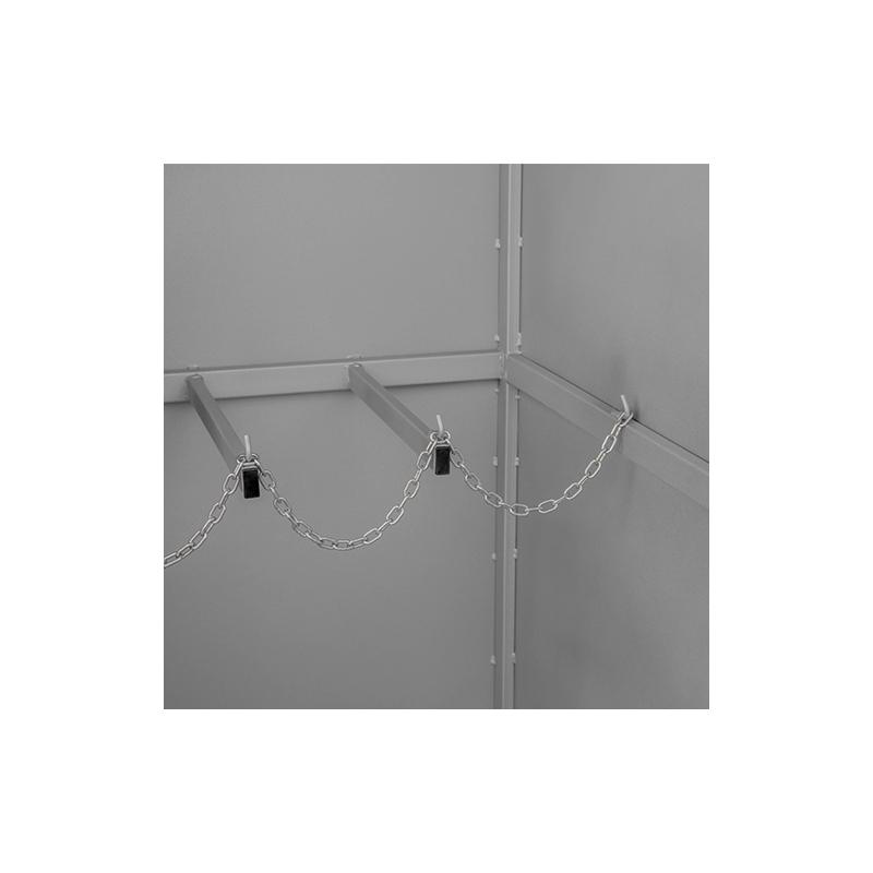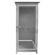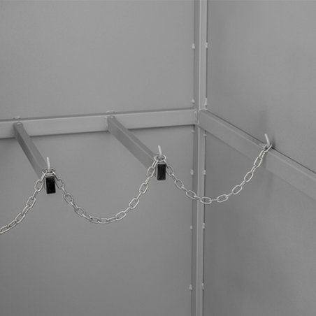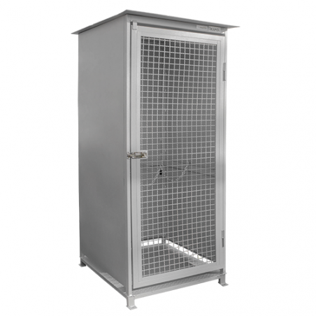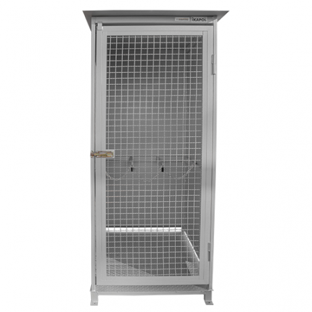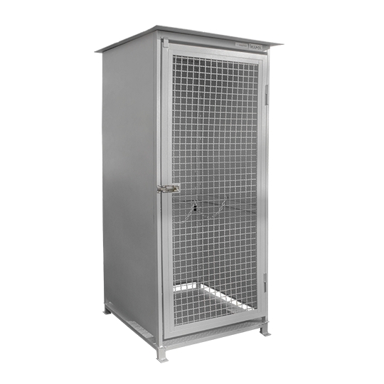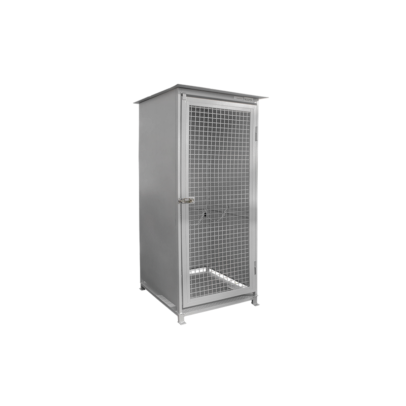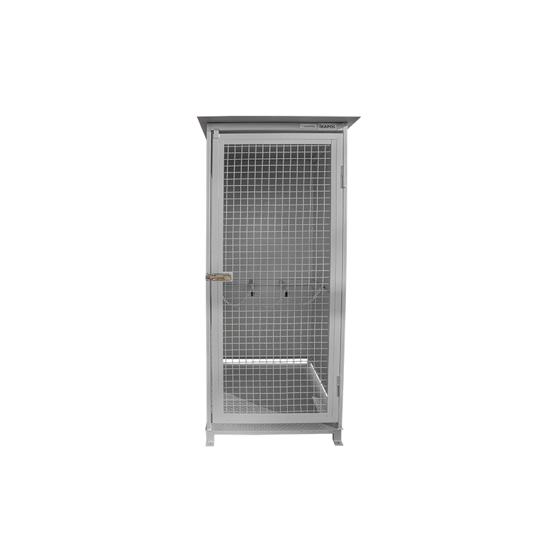 Box do przechowywania butli z gazem na zewnątrz. Niezwykle wytrzymała, spawana konstrukcja sufitu i ścian bocznych, pomalowana. Naturalną wentylację zapewniają drzwi kratowe. W środku specjalnie dostosowane uchwyty z łańcucha, by uchronić butle przed przemieszczaniem się. Szafa wyposażona w uchwyty, które gwarantują stabilne mocowanie do podłoża.