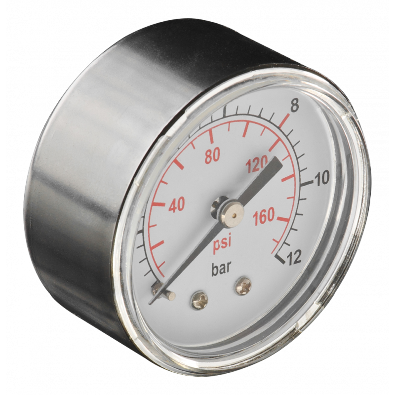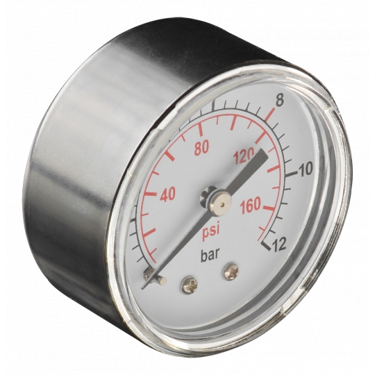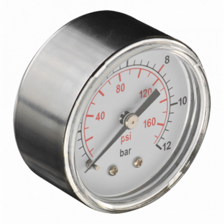 Manometr do sprężonego powietrza, średnica 60 mm, zakres ciśnienia 0-12 barów, przyłącze osiowe 1/4"